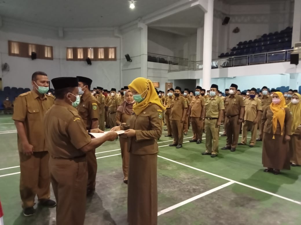 PANYABUNGAN I 293 Aparatur Negara Sipil ( ASN ) Pemerintah Daerah Kab.Mandailing Natal ( Madina ) dikukuhkan dan dilantik oleh Bupati Mandailing Natal H.M.Ja’far Shukairi Nasution melalui Plh.Sekdakab. Mandailing Natal Drs.Syahnan Batubara,MM. bertempat di Gedung Serba Guna Panyabungan. Jumat, (31/12/2021 ).
