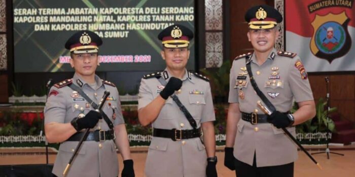 MADINA| Kapolda Sumatera Utara, Irjen Pol Drs. RZ Panca Putra Simanjuntak, M Si Rabu (22/12/2021) memimpin langsung upacara serah terima jabatan Kapolresta Deli Serdang, Kapolres Mandailing Natal, Kapolres Tanah Karo Dan Kapolres Humbahas Serta Dirpolairud Polda Sumut di Aula Tri Brata Mapolda Sumatera Utara.