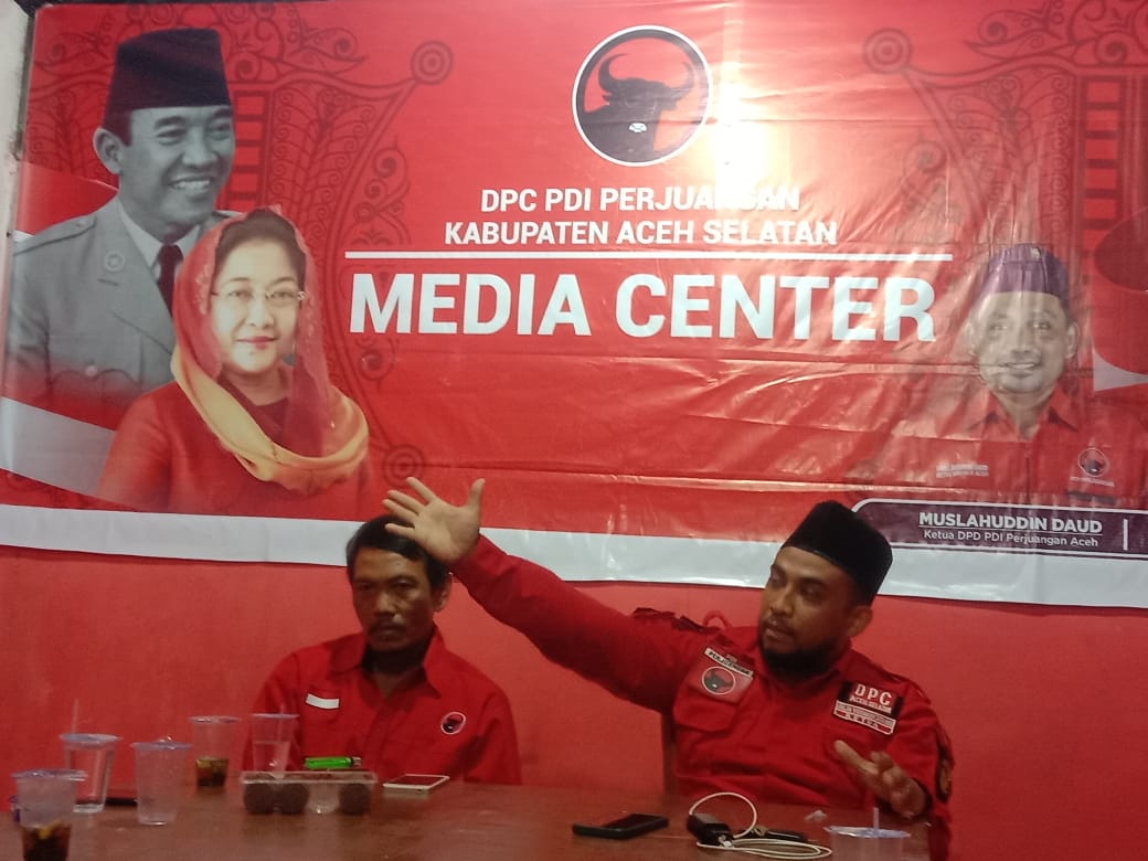 Acara komferensi pers bertempat di Kantor DPC PDIP Gampong Lhok Keutapang Kecamatan Tapaktuan berlangsung Minggu (26/6/2022).