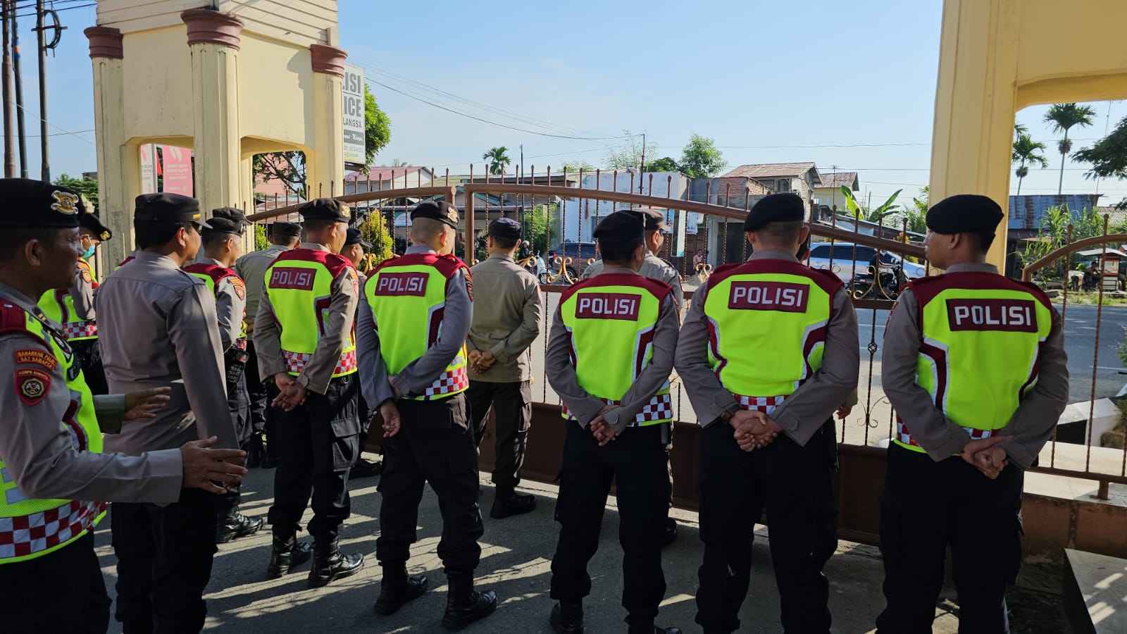 LANGSA | Personil Polres Langsa Lakukan Sispam Mako (Sistim Pengamanan Markas Komando) untuk mengantisipasi terjadinya tindakan kejahatan dan gangguan yang secara tiba-tiba menyerang Mapolres Langsa, Selasa 26 Juli 2023.