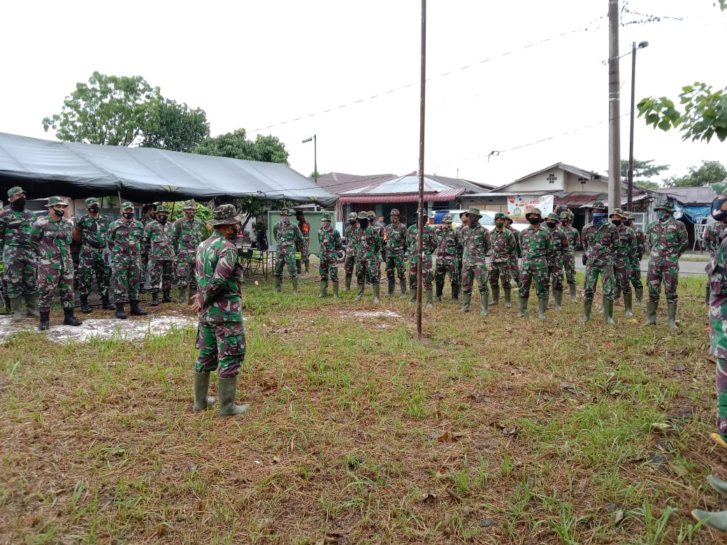 MEDAN – Komandan Pleteon Lettu Bahrum S Ginting memimpin apel pagi sekaligus menyampaikan beberapa hal penting yang harus dijalankan para personel Satgas TMMD 109 Kodim 0201/BS dalam bertugas,Selasa (29/09/2020).