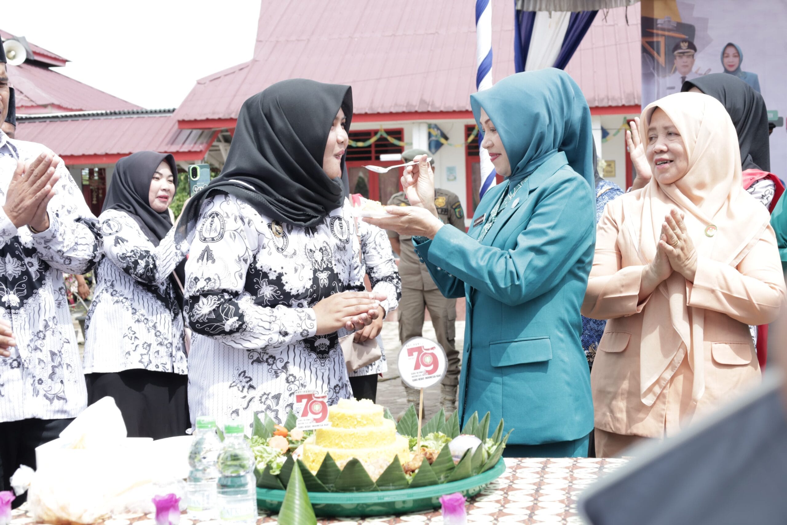 Wakil Bupati Madina Atika Azmi Utammi Nasution usai memberikan sambutan lansung melakukan potong tumpeng dan mengucapkan, selamat Hari Guru Nasional dan HUT ke 79 PGRI.