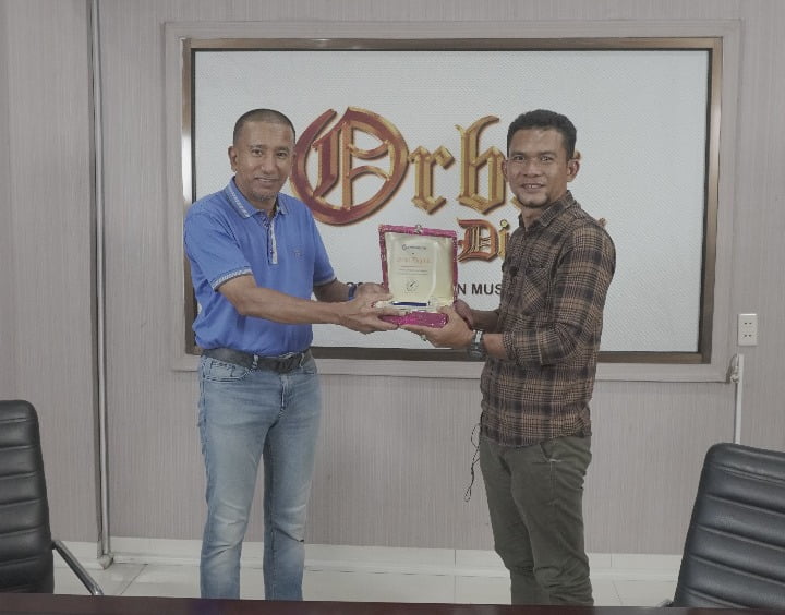 Kedatangan Atok Labu bersama sahabatnya Umar disambut langsung oleh Pemimpin umum dan Pendiri Harian Orbit dan orbitdigitaldaily.com Mahsin SH sekaligus ngobrol dengan penuh keakaraban apalagi keduanya merupakan putra asli Pangkalan Brandan Langkat.
