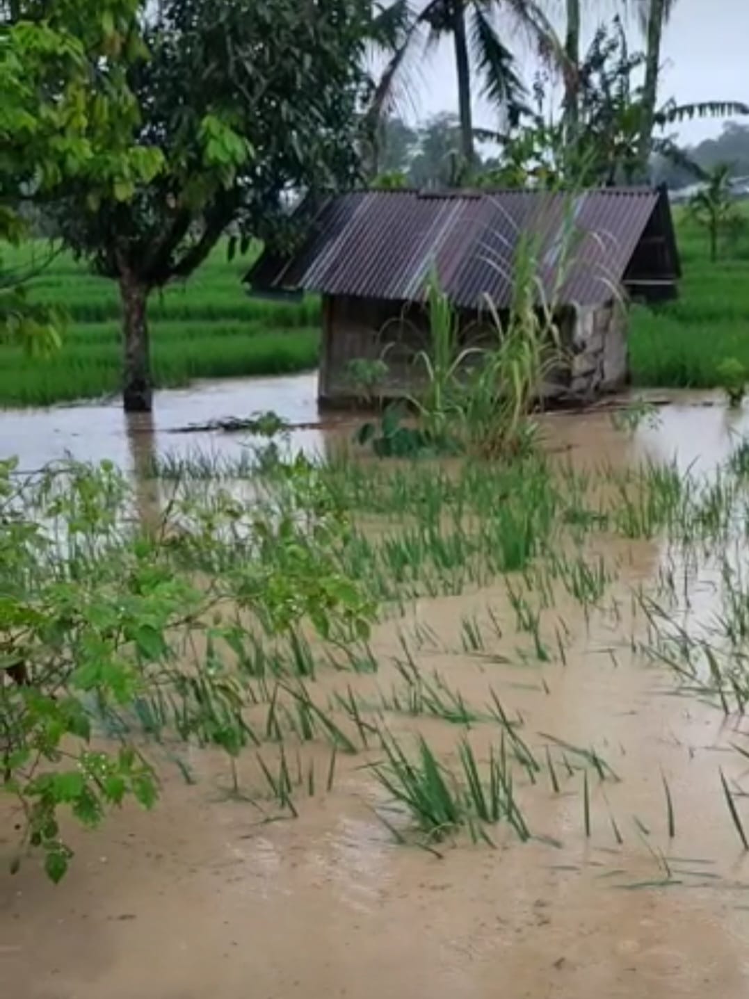 Bahkan puluhan hektare lahan pertanian sawah dan lainnya diperkirakan gagal panen lantaran genangan air cukup tinggi dan tak seperti luapan aliran Sungai Batang Toru.