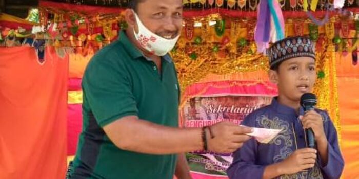 Tabligh Akbar itu diisi dengan ceramah yang disampaikan Ustadz Agus Rahmadi SPdi dan Ustadz Cilik Amar di Pasar Anugrah Desa Batahan.