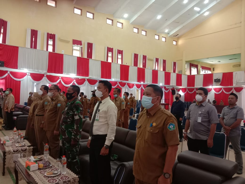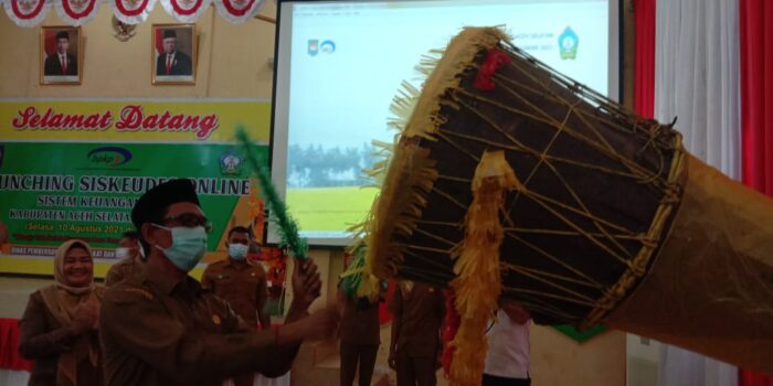 ACEH SELATAN| Bupati Aceh Selatan, Tgk Amran bersama Forkopimda dan pejabat terkait lainnya launching Aplikasi Sistem Keuangan Desa (Siskeudes) Online di Gedung Rumoh Agam Tapaktuan, Aceh Selatan, Selasa (10/8/2021).