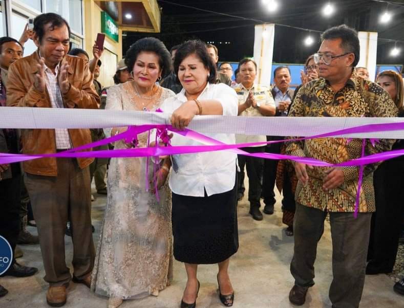 KARO | Bupati Karo Cory Sriwaty Sebayang gunting pita Grand Opening pusat kuliner Ria Food Court Berastagi , Rabu (6/4/2023) di lokasi Gedung Ria Food Court Berastagi.
