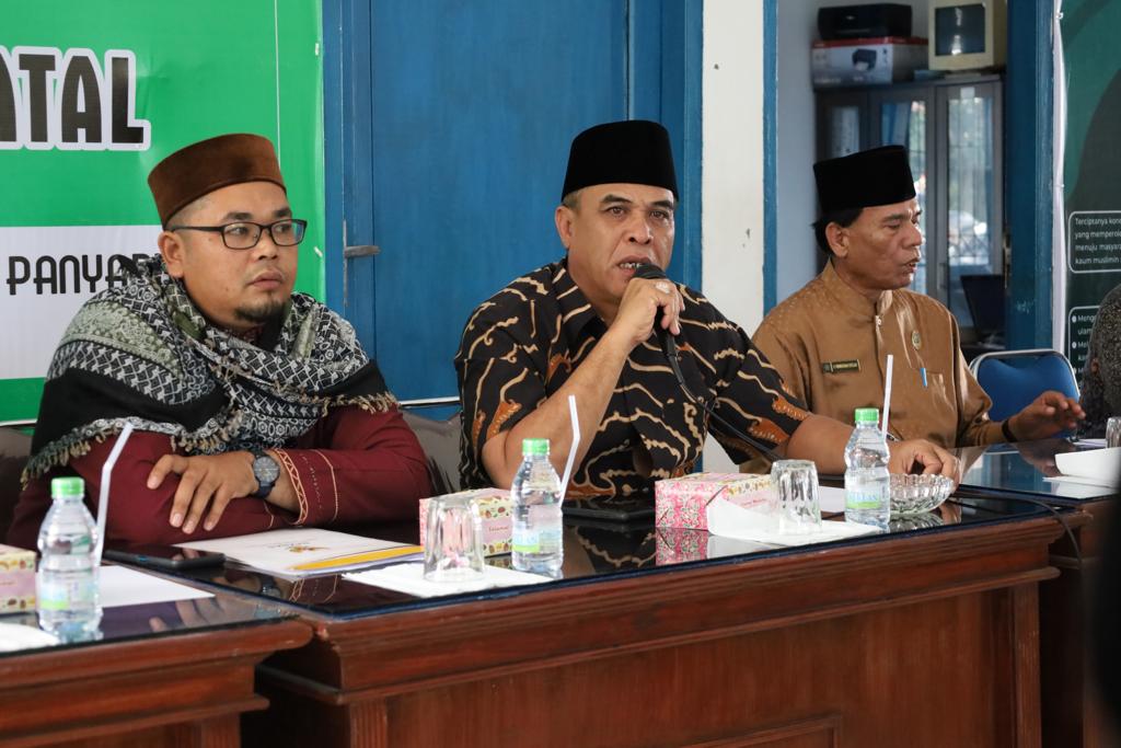 MADINA | Bupati Mandailing Natal (Madina) HM Jafar Sukhairi Nasution menghadiri Silaturahmi dan Mudzakarah Sosialisasi Peraturan Bupati (perbub) No 53 Tahun 2022 tentang Pengelolaan Zakat bekerja sama dengan Majelis Ulama Indonesia (MUI) dan BAZNAS di Kantor MUI, Komplek Perkantoran Bupati, Panyabungan, Kamis (18/8/2022).