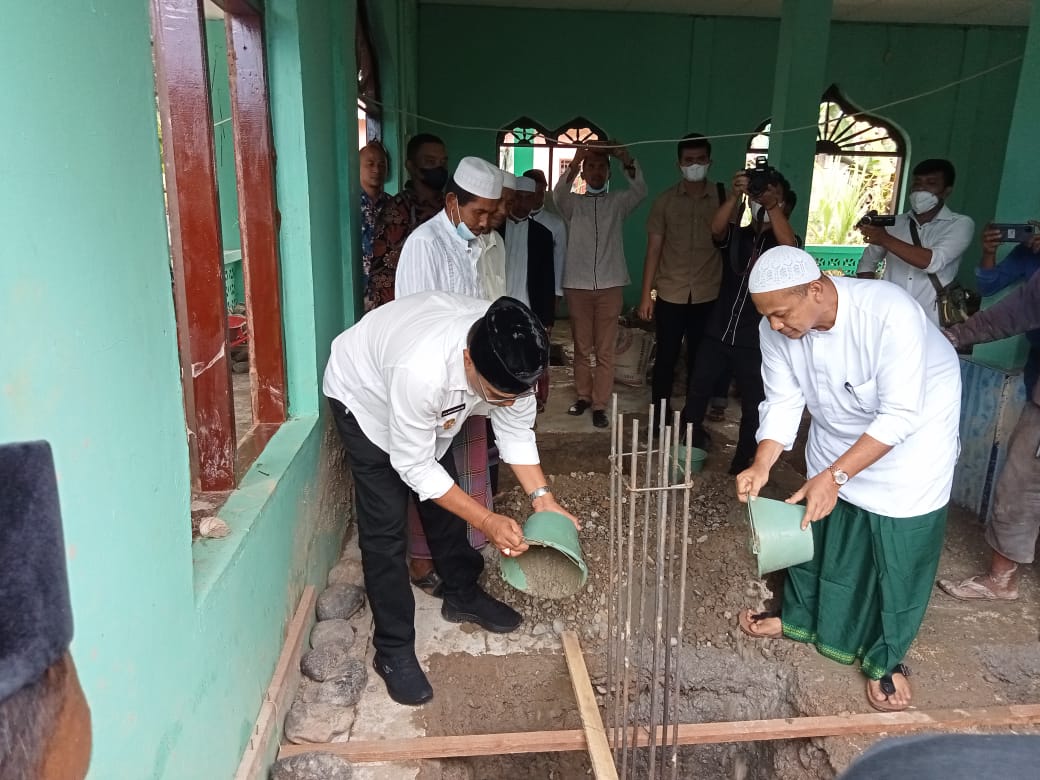 PANYABUNGAN | Bupati Mandailing Natal ( Madina ) H.M.Jakfar Shukairi Nasution melakukan peletakan batu pertama pembangunan Mesjid Al-Falah Desa Batang Gadis Jae kecamatan Panyabungan Barat Kamis ( 23/12/2021).