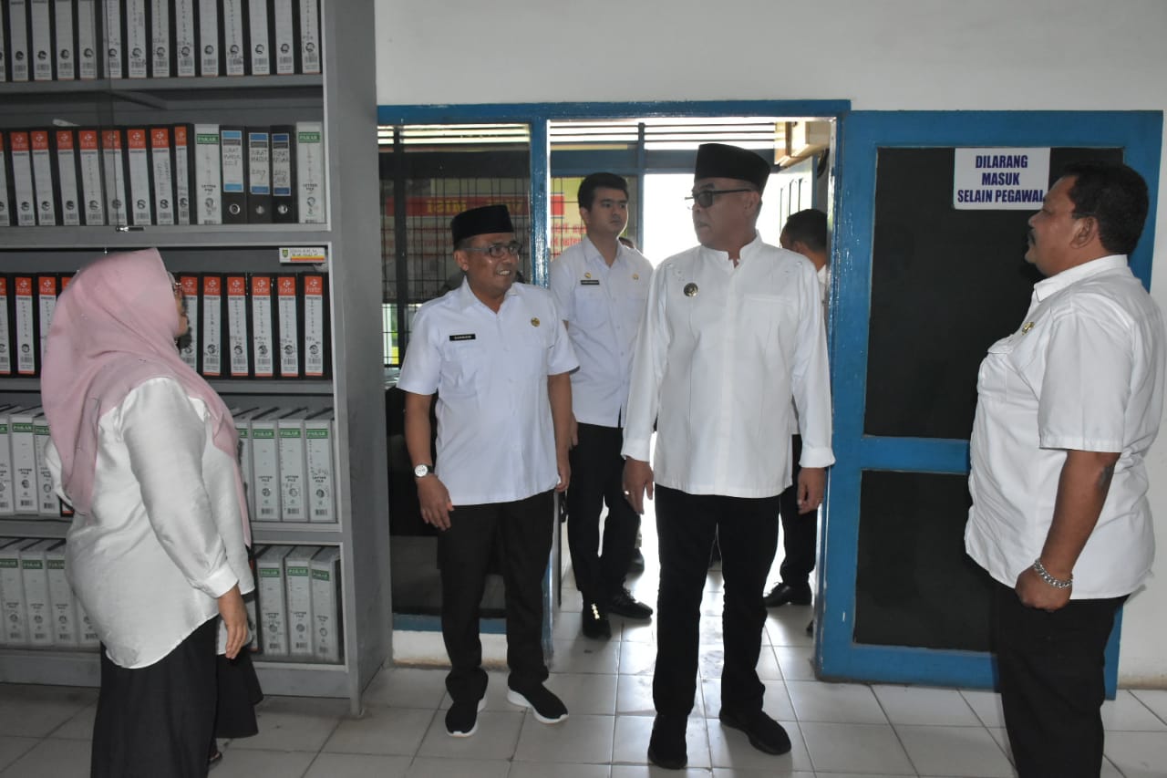 MADINA l Guna memastikan pelayanan publik berjalan dengan baik usai libur lebaran, Bupati Mandailing Natal (Madina) HM Jafar Sukhairi Nasution melakukan inspeksi mendadak (sidak) ke kantor Dinas Kependudukan dan Pencatatan Sipil (Disdukcapil) di kantor bupati lama, Kecamatan Panyabungan, Rabu (26/4/2023).