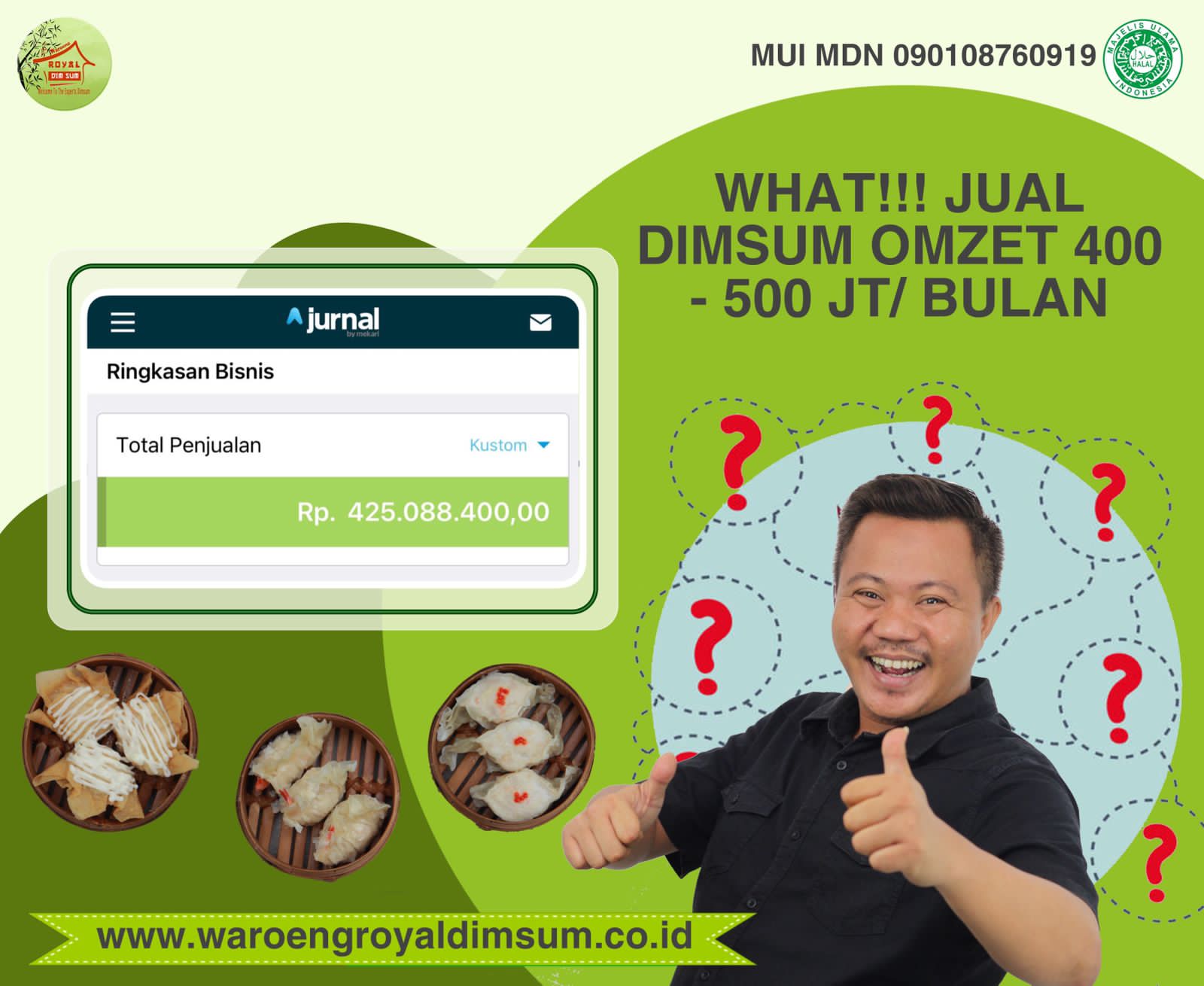 Waroeng Royal Dimsum dikelola anak medan, terpecah miliki sertifikat halal MUI-MDN :090108760919 dan DINKES P-IRT:2.06.1275.010550.23.