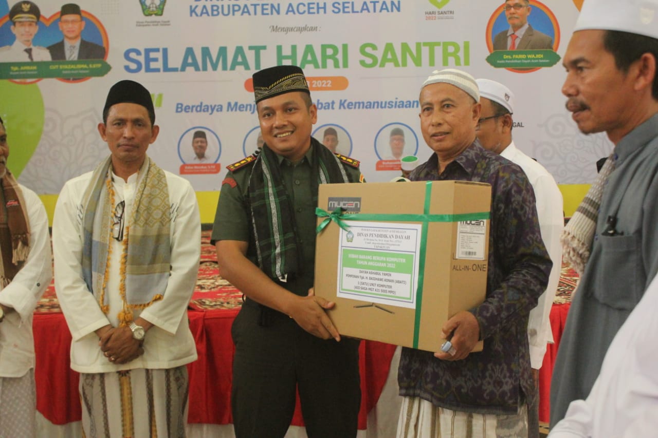 “Selamat kepada seluruh komponen santri atas terselenggaranya peringatan hari santri nasional tahun 2022, mudah mudahan kegiatan ini menjadi pendorong semangat kita bersama untuk mewujudkan Kabupaten Aceh Selatan yang aman, tentram dan berwibawa,” tegas Dandim.