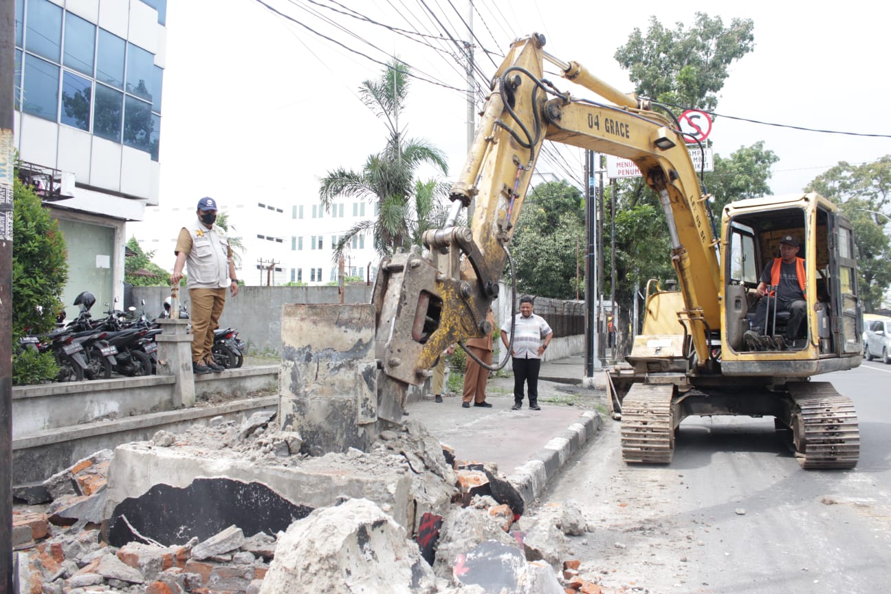 Selain itu, di bawah pengawasan langsung dari Kadis Pekerjaan Umum Topan Ginting, Kadis Kebersihan Pertamanan Syarifuddin Irsan Dongoran, dan Camat Medan Barat Lilik, para petugas tersebut juga melakukan pembersihan tunggul tiang reklame yang tertinggal.