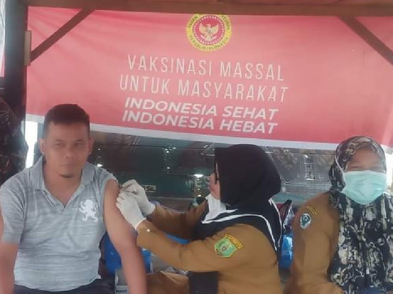 PALAS| Dinas Kesehatan ( Dinkes) Kabupaten Padang Lawas ( Palas) menggandeng Badan Intelijen Negara (BIN) Daerah Sumatera Utara ( Sumut) menggelar kegiatan Vaksinasi Covid-19, bagi masyarakat luas di sejumlah tempat, di Palas, termasuk di lingkungan II, Kelurahan Pasar Sibuhuan, Kecamatan Barumun, Senin (14/3/2022).
