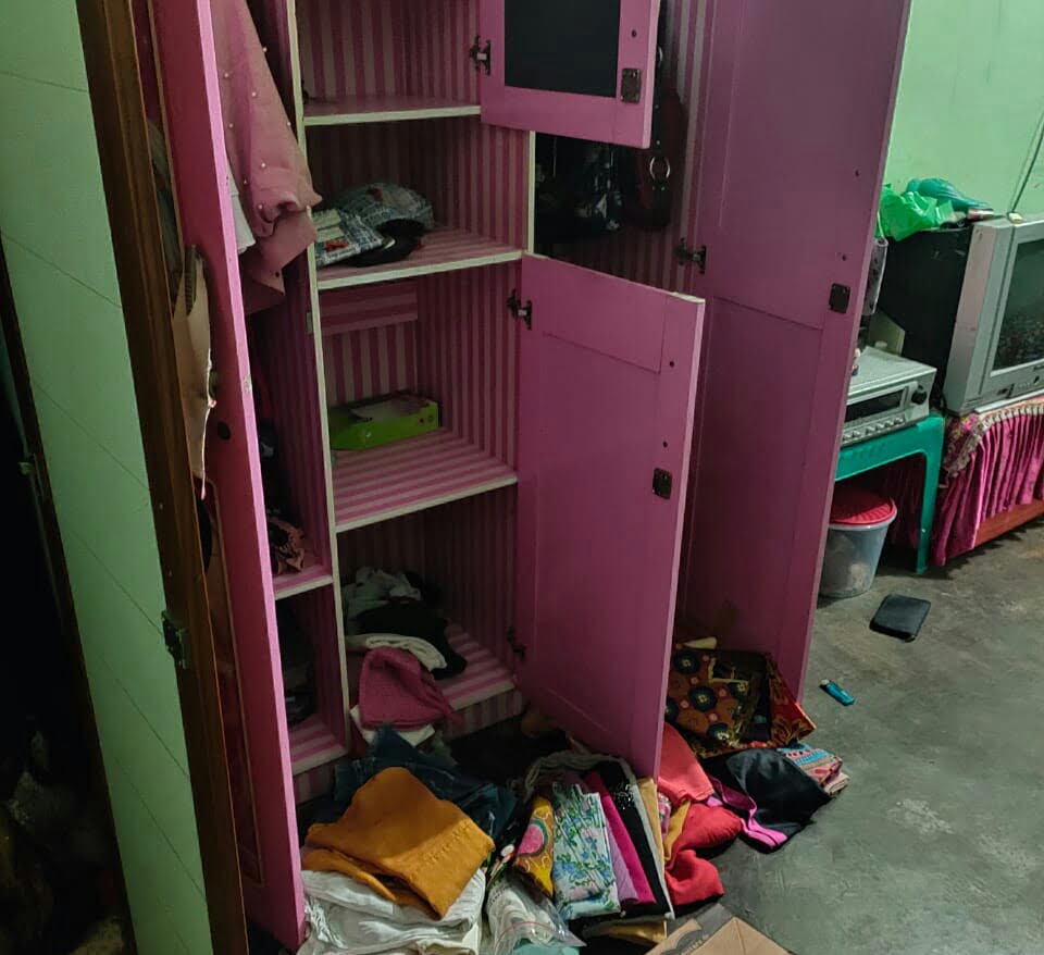 Akibatnya, seisi rumah menjadi berantakan, diobrak abrik pencuri yang diperkirakan lebih dari satu orang.