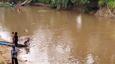 Warga mencari ikan mabuk di aliran sungai Palu Pakeh, Kecamatan Batang Serangan, Kabupaten Langkat. (Dok foto warga)