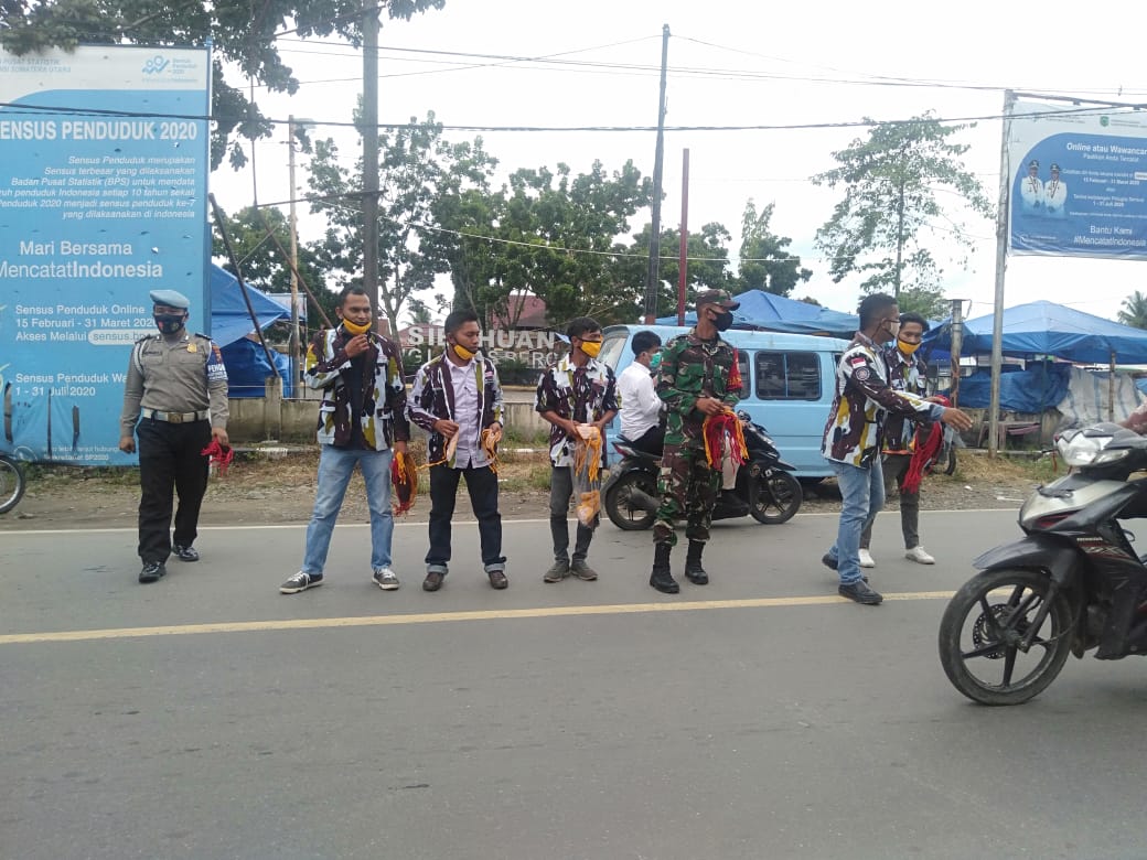 PADANGLAWAS |Dukung program Pemerintah Kabupaten ( Pemkab) Padang Lawas ( Palas) tentang pengendalian dan pencegahan wabah Covid- 19 terhadap masyarakat luas dimasa pandemi saat ini, Pimpinan Anak Cabang ( PAC) Ikatan Pemuda Karya ( IPK) menggelar kegiatan ( Giat) bagi – bagi masker, kepada masyarakat pengguna jalan di jalan Kihajar Dewantara, Sibuhuan, tepatnya di depan kantor Mapolsek Barumun, Senin ( 15/2/2021) siang.