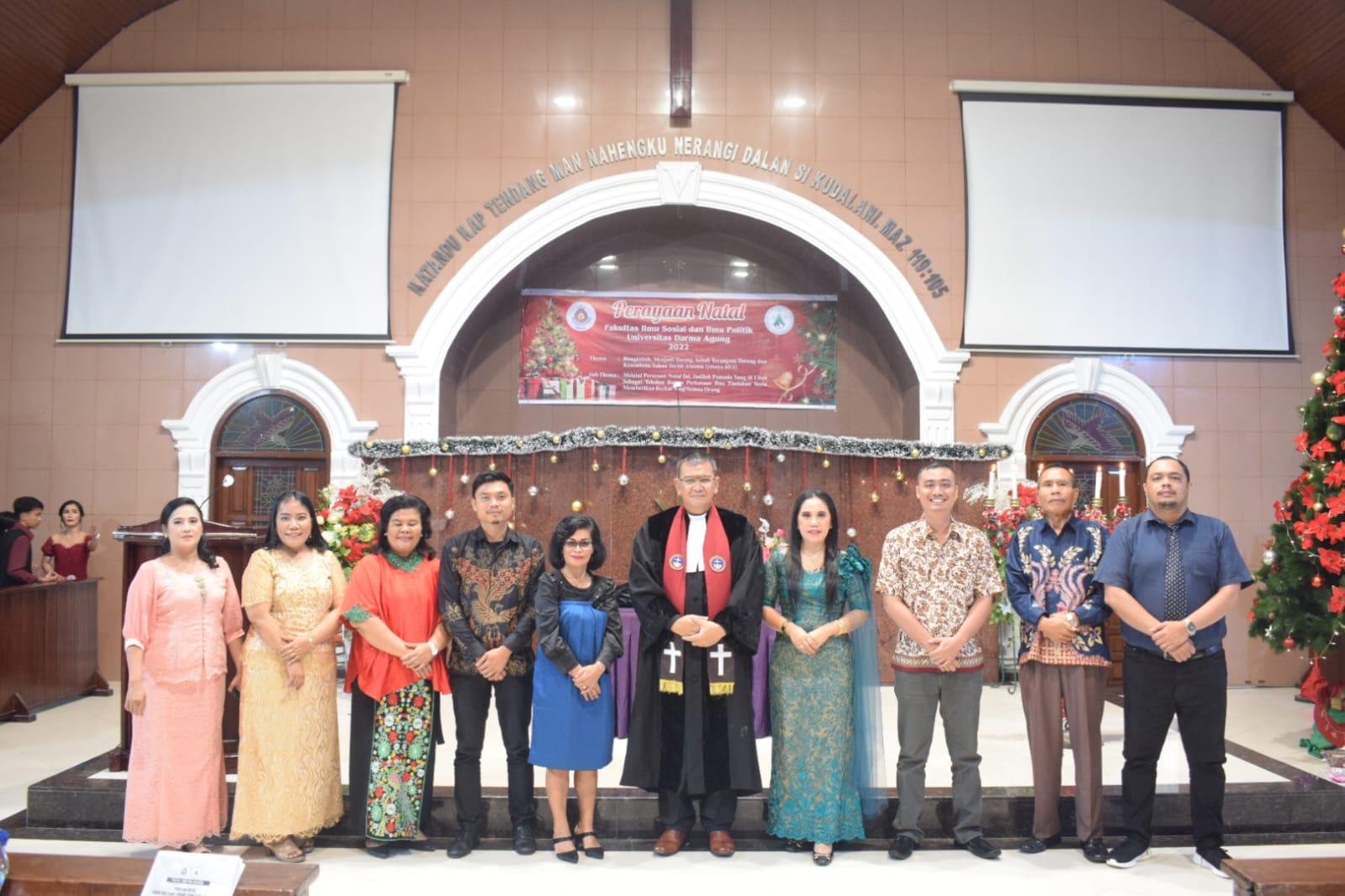MEDAN | Fakultas Ilmu Sosial dan Ilmu Politik (FISIP) Universitas Darma Agung (UDA) menggelar perayaan Natal di Gereja GBPK Maranatha Jalan Sei Batang Serangan Medan, Rabu malam, (14/12/2022).