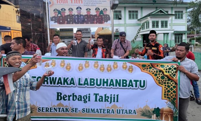 LABUHANBATU | Memasuki minggu terakhir Ramadan 1447 H, Forum Wartawan Kejaksaan (Forwaka) Kabupaten Labuhanbatu membagikan 700 bungkus lebih takjil kepada masyarakat yang melintas di depan Kantor Kejaksaan Negeri (Kejari) Rantauprapat, Jumat (13/3/2026).