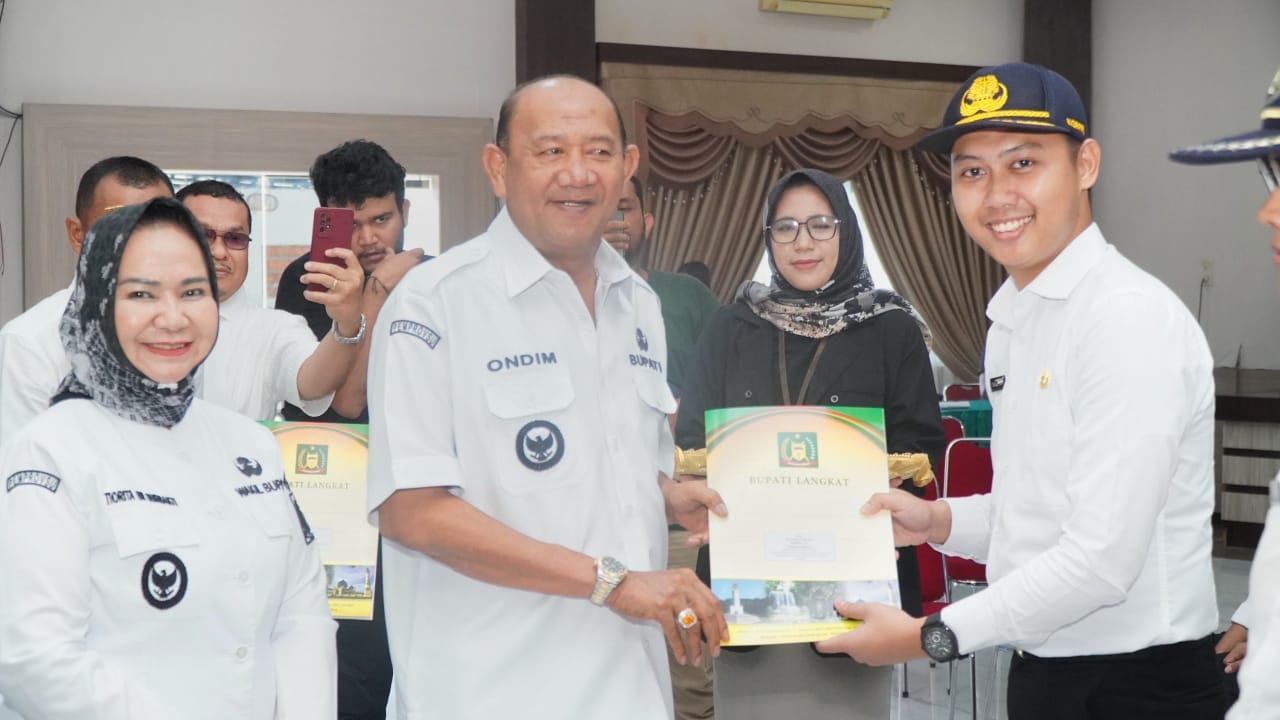 LANGKAT | Sebanyak 72 calon pegawai negeri sipil (CPNS) resmi menerima Surat Keputusan (SK) pengangkatan dari Bupati Langkat Syah Afandin, di Ruang Pola Kantor Bupati Langkat, Rabu (23/4/2025).