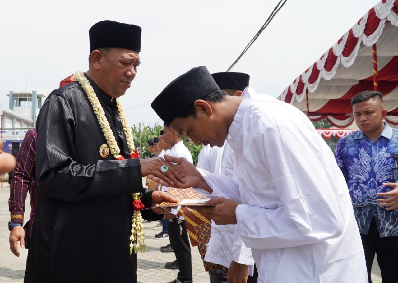 LANGKAT | Bupati Langkat H Syah Afandin SH menyerahkan Remisi Umum (RU) kepada warga binaan pemasyarakatan di Lapas Narkotika Kelas II A Langkat pada, Minggu (17/8/2025),