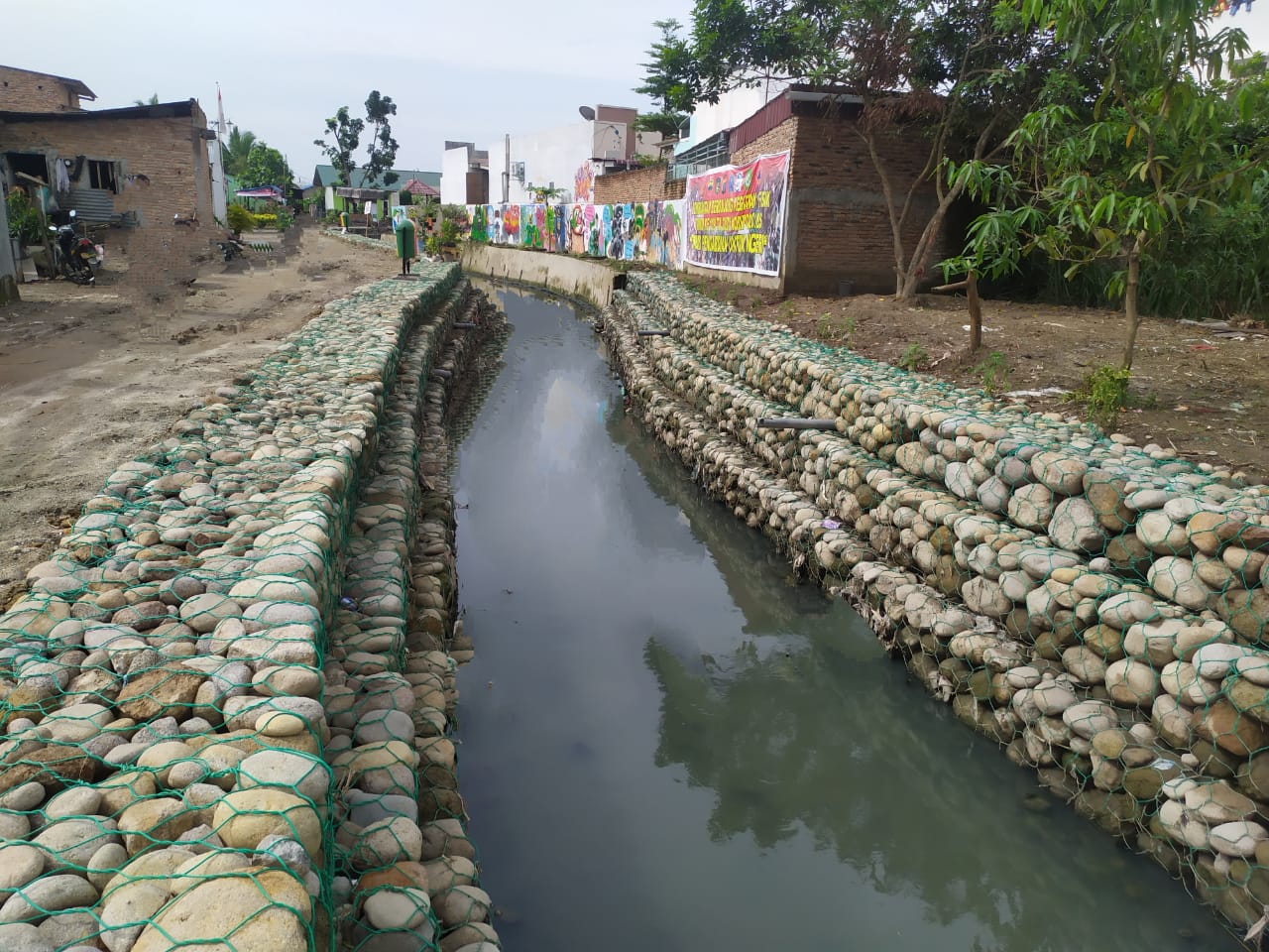 Dengan dihiasi ukiran yang menarik terlihat disepanjang sungai merah, sungai yang bersih, batu yang tersusun rapi membuat warga sangat senang puas dari hasil TMMD yang sudah selesai.