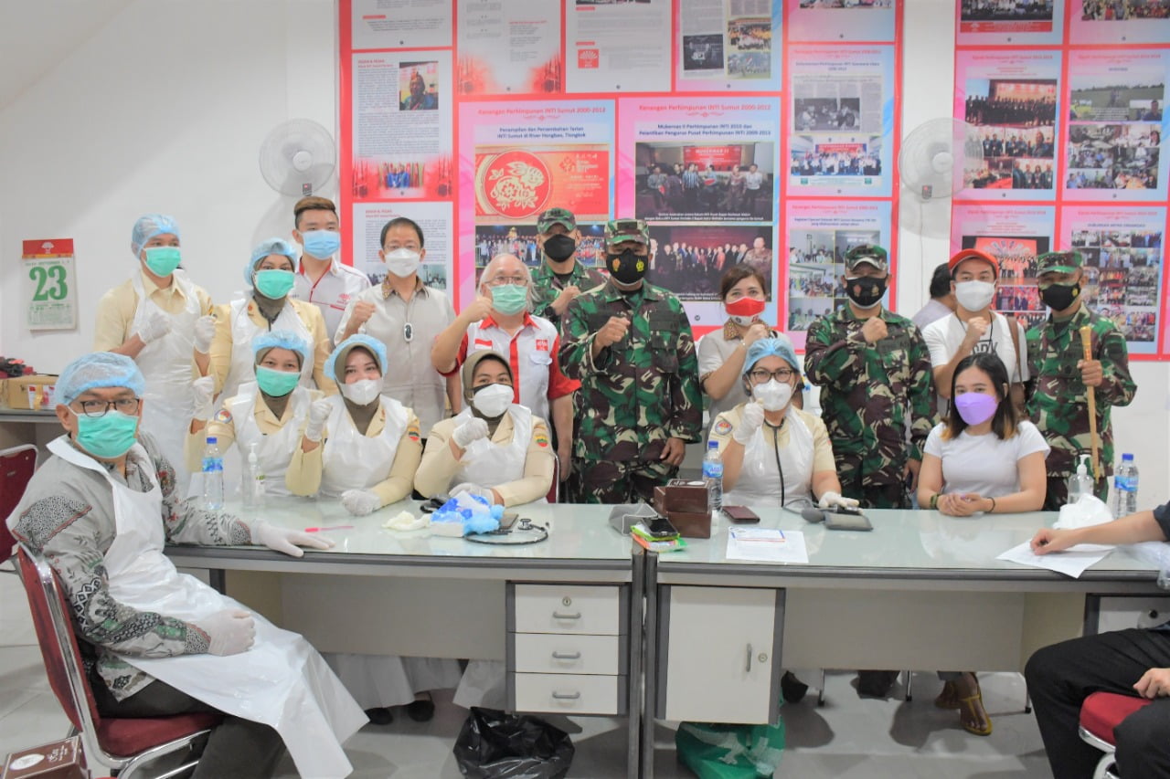 MEDAN| Dalam rangka upaya memutus mata rantai perkembangan Covid-19 dan mewujudkan Kota Medan menjadi zona hijau serta membangkitkan perekonomian, maka Kodam I/BB Gelar Serbuan Vaksinasi TNI bersama Perhimpunan Indonesia Tionghoa (INTI) Sumut kepada warga masyarakat Kota Medan.
