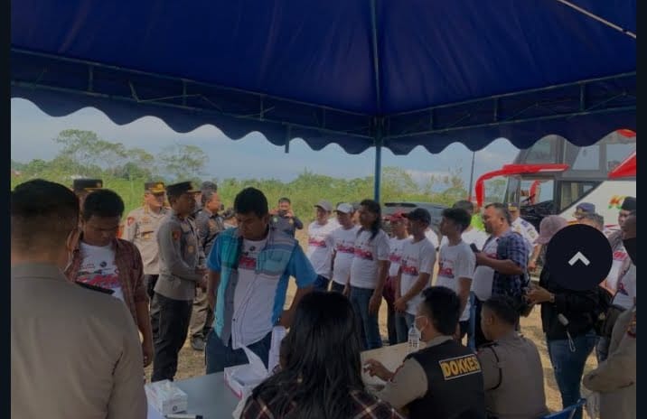 TOBA | Kepolisian lakukan test narkoba bagi 37 pengemudi shuttle bus yang akan melayani pengunjung pada perhelatan bergengsi F1 PowerBoat 2024 di Danau Toba Balige, berlangsung di Parkiran Lumban Pea, Jumat 1 Pebruari 2024.