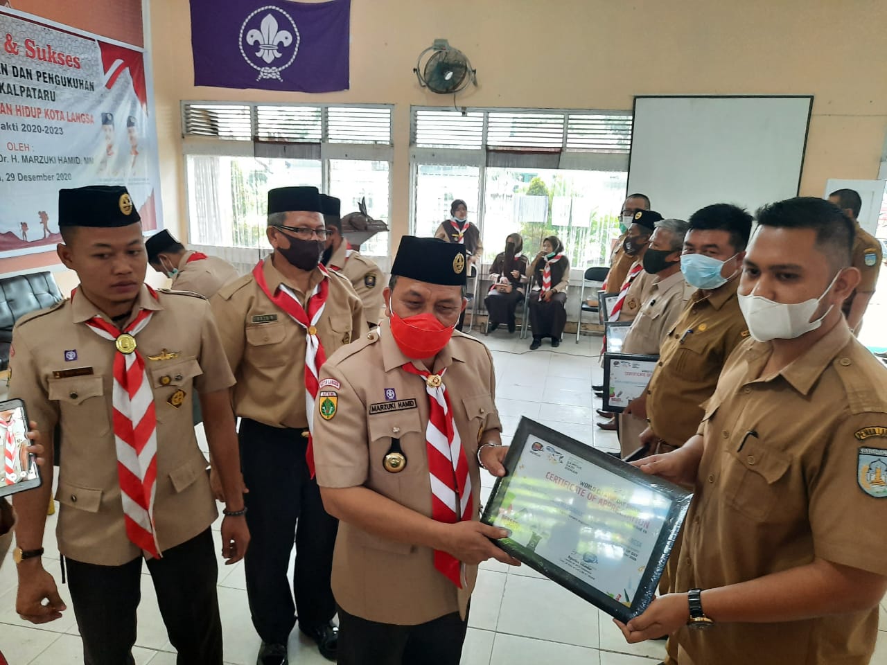LANGSA | Kepala Kwarcab Pramuka Kota Langsa. Dr H Marzuki Hamid MM. Resmi melantik dan Pengukuhan Saka Kalpataru Kota Langsa masa bakti 2020 – 2003, di Aula Candida Kantor Pramuka Kota langsa. Selasa (29/12/2020)