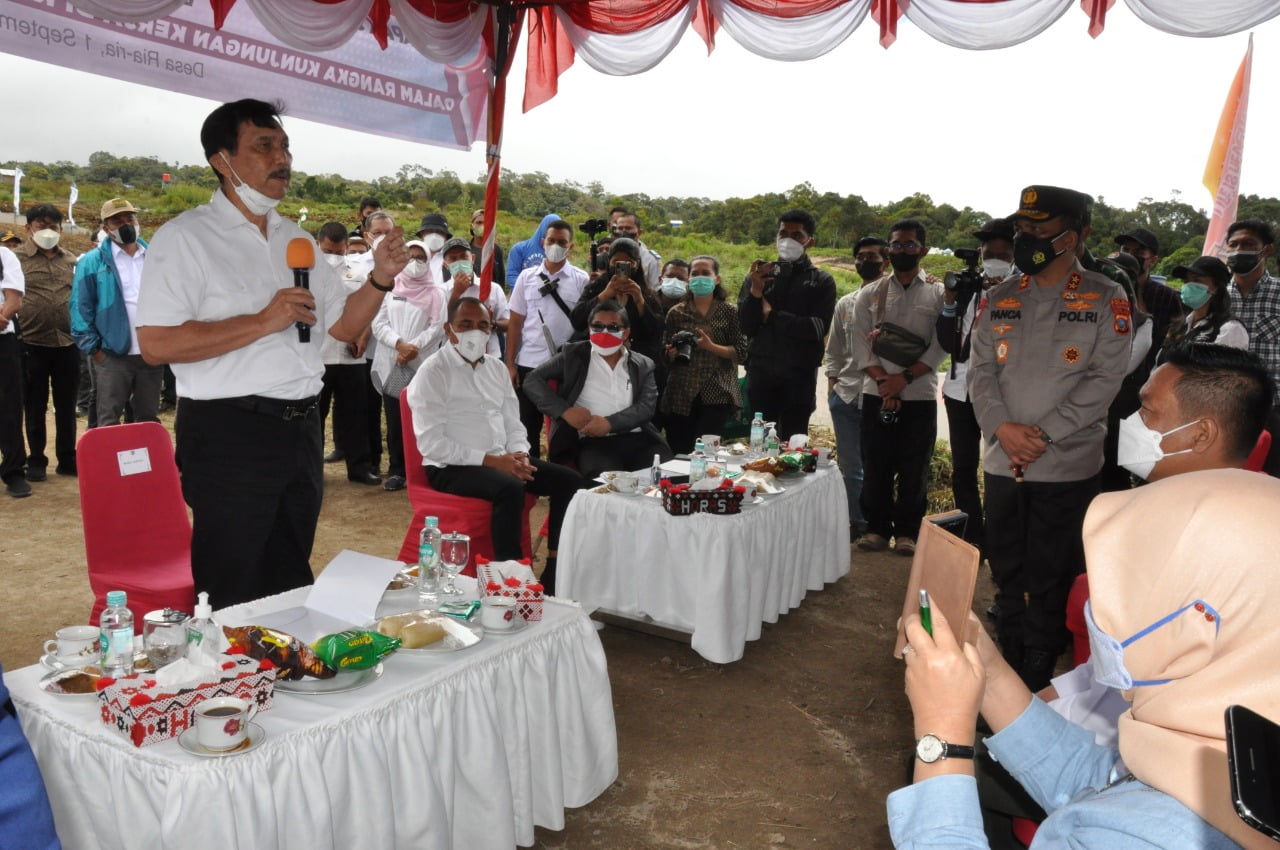 Kunjungan kerja Menteri Koordinator Bidang Kemaritiman dan Investasi RI, Jend TNI (Purn) Luhut Binsar Panjaitan ke Kabupaten Humbahas dalam rangka meninjau pengembangan Pertanian Food Estate serta Panen Kentang di Desa Ria-ria Kecamatan Pollung Kabupaten Humbahas, Rabu (1/9/2021). Foto/Ist.