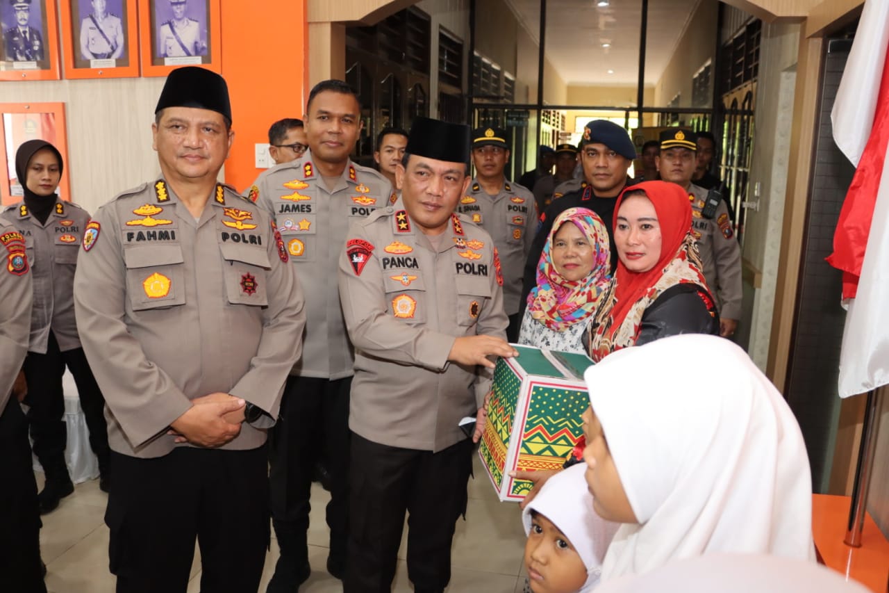 Kapoldasu Irjen Panca Putra memberikan bantuan kepada anak yatim dan panti asuhan disela-sela kunjungan kerjanya di Polres Labuhanbatu