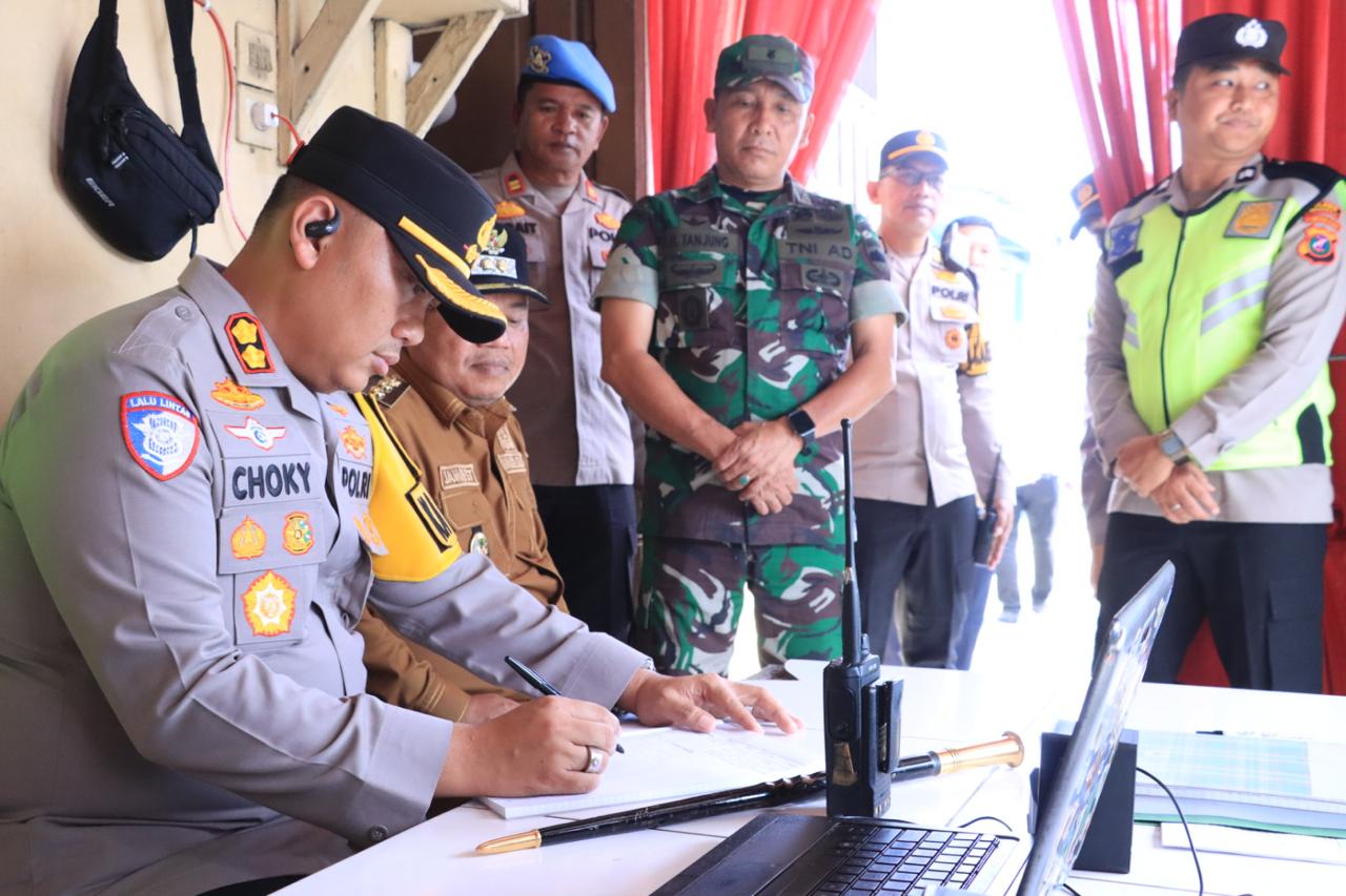 Kapolres Labuhanbatu AKBP Choky Sentosa Meliala serta unsur Forkopimda Labuhanbatu melaksanakan pengecekan kesiapsiagaan Pos Pengamanan Natal 2025 dan Tahun Baru 2026.