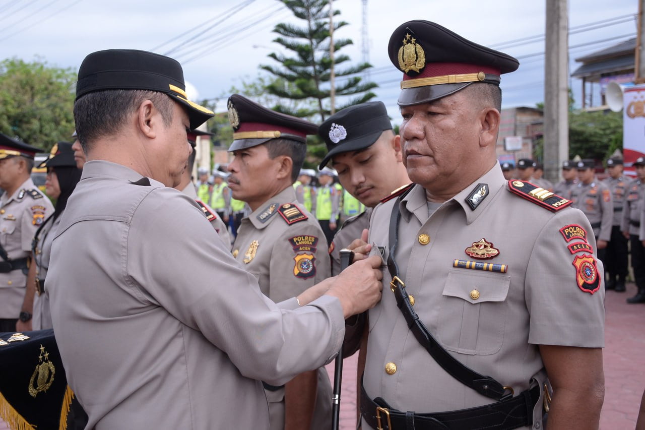 Kapolres Langsa AKBP Muhammadun menyematkan tanda pergantian