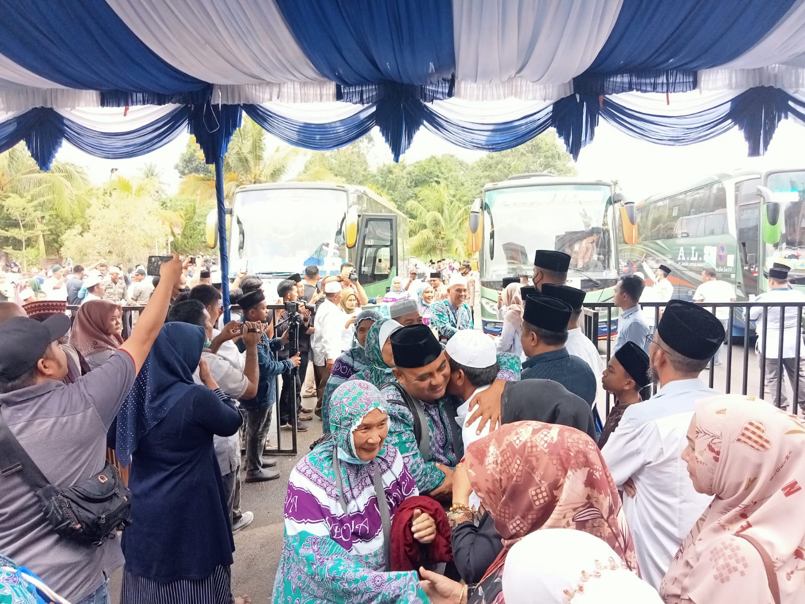 Dengan tangis bahagia kedatangan para jama’ah haji ini langsung disambut oleh unsur Forkopimda, para kepala OPD serta keluarga jama’ah haji yang sejak pagi sudah berkumpul di Mesjid Agung.