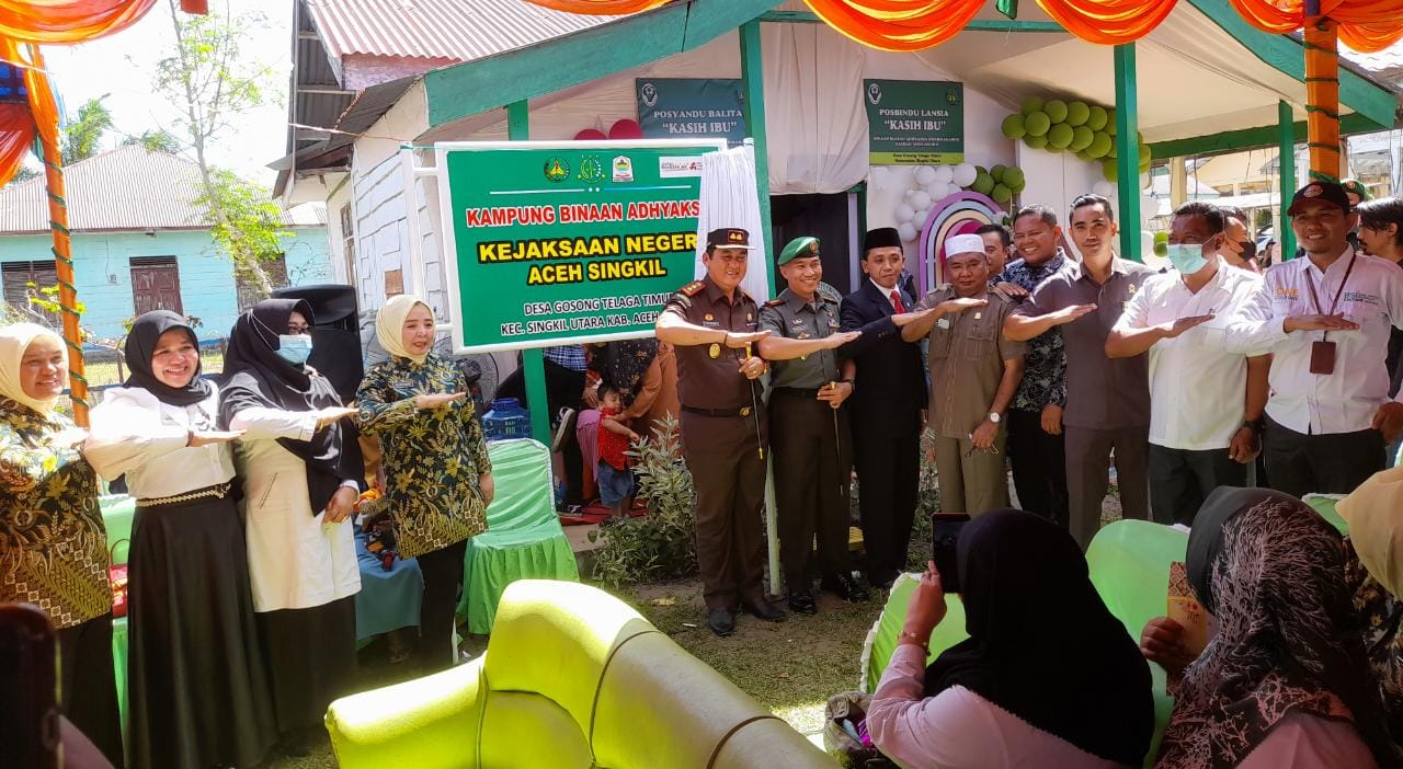 Kejari Singkil didampingi Dandim 0109, Anggota Dewan, PLT Kadis Kesehatan, Ketua Mahkamah Syariyah, Kepala BRI, Direktur RSUD serta pejabat lainnya saat melaunching kampung binaan adhiyaksa, Rabu (20/7/2022). Foto/Ist
