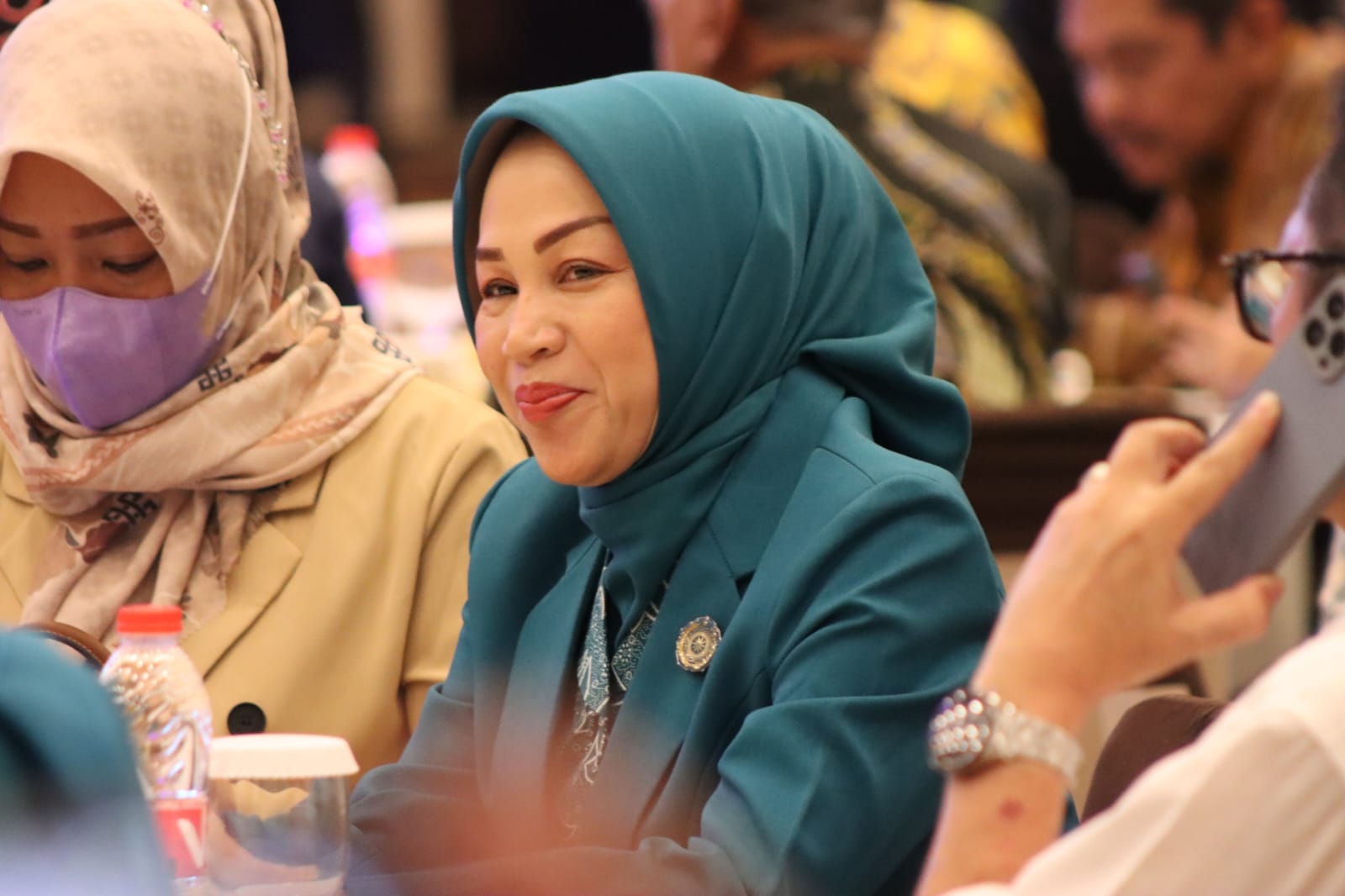 MADINA | Ketua Tim Penggerak Pemberdayaan Kesejahteraan Keluarga (TP PKK) Kabupaten Mandailing Natal (Madina) Hj. Eli Mahrani Jafar Sukhairi Nasution menghadiri peringatan Hari Keluarga Nasional (Harganas) ke-29 di Hotel Santika Premiere Dyandra, Kota Medan, Sumatera Utara (Sumut), Rabu (6/7/2022).