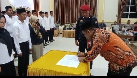 Pengukuhan dan Pelantikan PPS, Ketua KIP Kota Langsa juga menandatangani berita acara pelantikan, kemudian Anggota PPS saat pelantikan turut membacakan fakta integritas Pemilukada 2024, turut dihadiri Sekretaris KIP Langsa, Para Komisioner KIP Kota Langsa