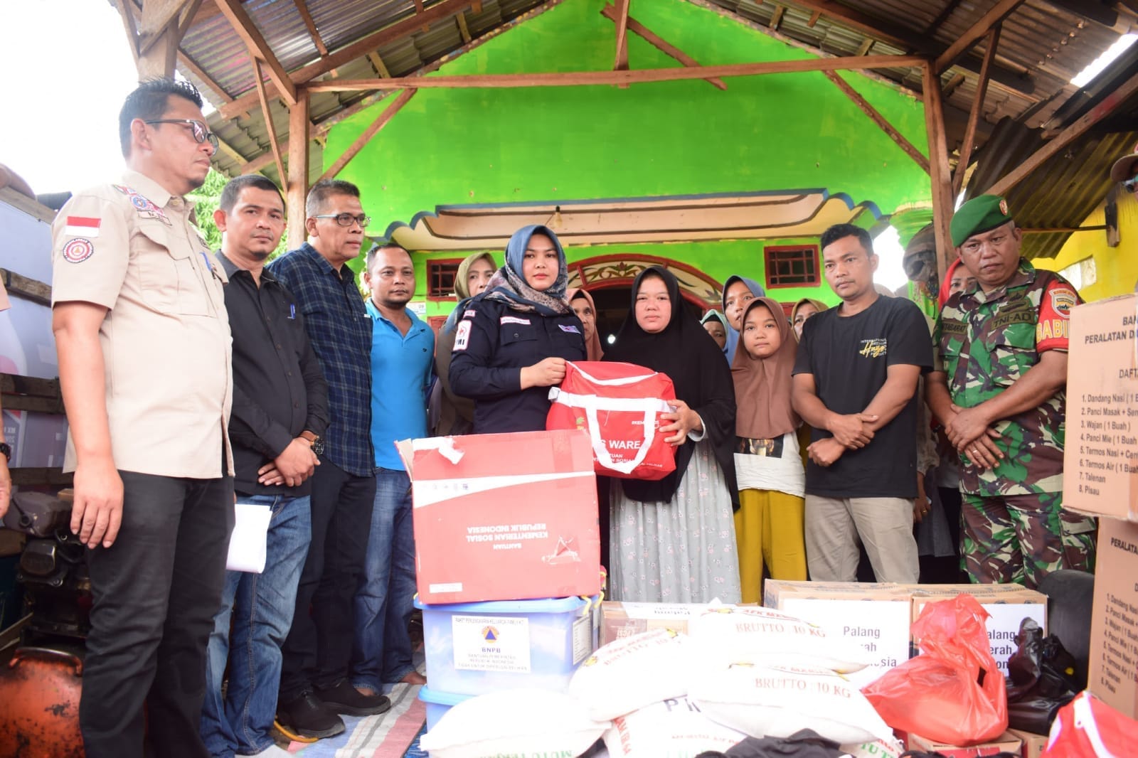 Wabup Madina Atika Azmi Utammi datang bersama rombongan membawa bantuan sandang dan pangan untuk para korban kebakaran.