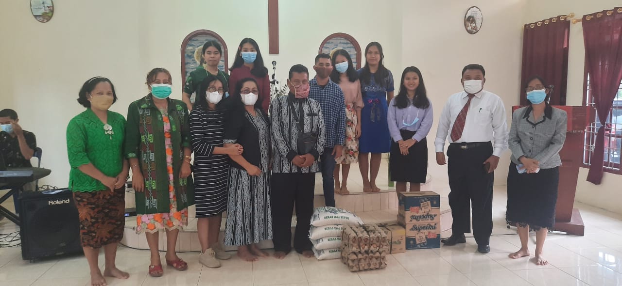 Selesai ibadah bersama kegiatan dilanjutkan dengan berbagi tali asih dengan memberikan sembako kepada anak-anak di Panti Asuhan Elim HKBP.