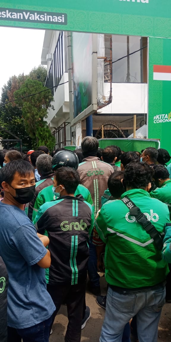 MEDAN| Sejumlah masyarakat Lanjut Usia (Lansia) mengaku kecewa dengan keberadaan Driver Ojol Grab yang terlalu banyak ketika melakukan Vaksin Covid -19, Selasa (4/5/2021).