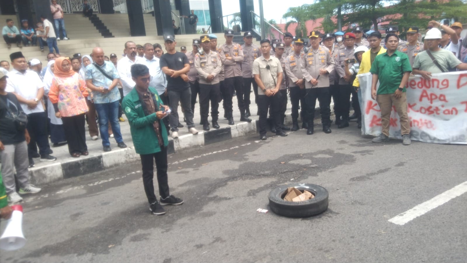 “Kami mengecam keras perilaku tidak pantas anggota DPR RI yang berjoget di ruang sidang. Itu pelecehan terhadap marwah parlemen sekaligus penghinaan terhadap rakyat,” teriak Kordinator Lapangan M.Ali Hanafiah didampingi Sulfi K. Sholeh .
