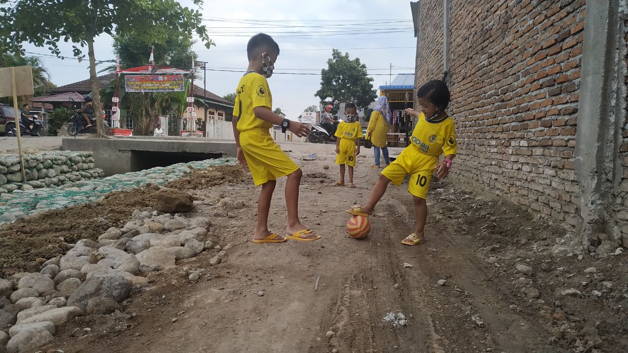 Medan – Dan SSK TMMD 109, Lettu Czi Bahrum S Ginting, sedang menikmati pemandangan bocah bermain bola dikarenakan pinggiran Bronjong lumayan luas melihat tiga orang bocah A,n Arkan (8 thn) bersama dua orang saudaranya dan tidak lupa menyampaikan kepada bocah untuk membuang sampah pada tempatnya serta menertibkan dan merapikan sampah yang berada dipinggir jalan melati lingkungan 4 tanah 600 marelan