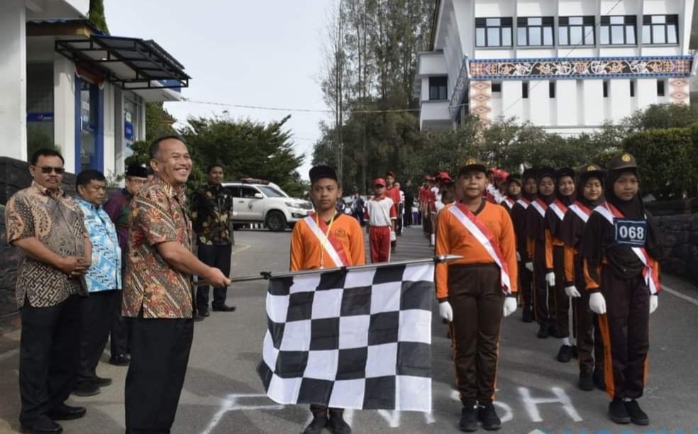 KARO | Mebyambut perayaan Hari Ulang Tahun (HUT) Kemerdekaan Republik Indonesia ke 78, Asisten Pemerintahan dan Kesejahteraan Rakyat Sekertaris Daerah Kabupaten Karo, Caprilus Barus, SSos lepas gerak jalan antar pelajar tingkat Sekolah Dasar (SD) dan Sekolah Menengah Pertama (SMP) se Kabupaten Karo, Kamis (3/8/2023) di halaman Kantor Bupati Karo, Jalan Jamin Ginting Kabanjahe.