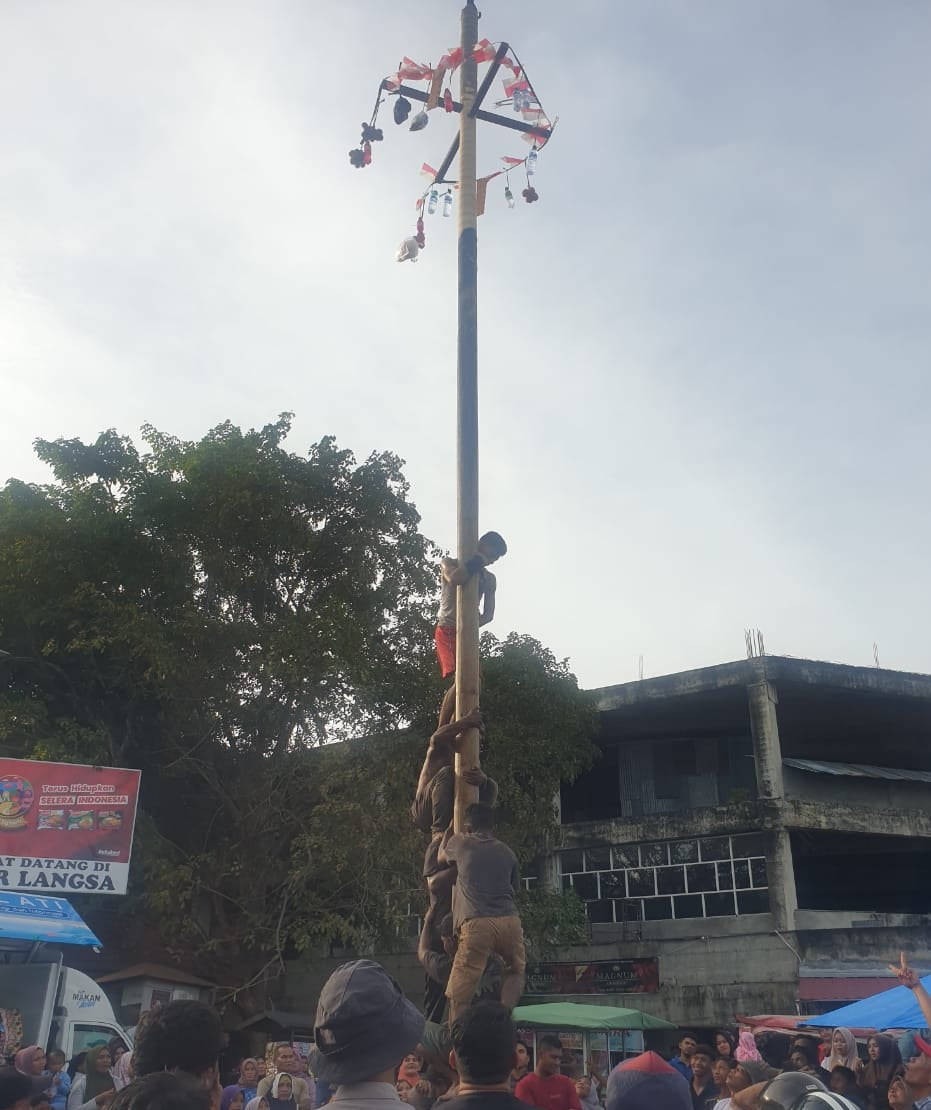 Meriahkan HUT RI, Ketua Pajak Ikan Langsa Adakan Panjat Pinang
