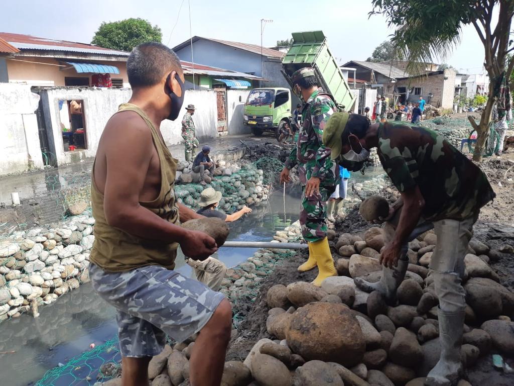 MEDAN – Proses pembangunan bronjong sepanjang 362 meter di lokasi TMMD ke-109 Kodim 0201/BS Medan di Lk IV, Jln Marelan VII, Kelurahan Tanah Enam Ratus, Kecamatan Medan Marelan, Kota Medan, Sumatera Utara, menjadi momen kedekatan antara Rakyat dengan TNI.
