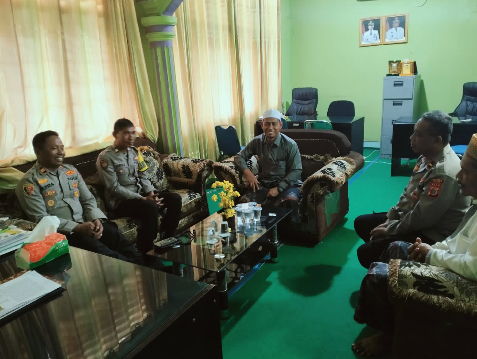 LANGSA | Ketua MPU Kota Langsa Tgk. H. Salahuddin Muhammad, S.Ud., M.H Beserta Jajaran MPU Kota Langsa menerima Kunjungan Kapolsek Langsa Barat Ipda Hafiza Fahmi, SH beserta jajaran Polse Langsa Barat di Ruang Kerja Ketua MPU, Selasa (16/01/2024).