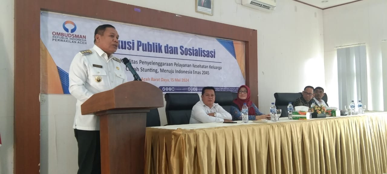 Pj. Bupati Abdya,H. Darmansah dalam sambutannya menyambut baik atas terlaksananya kegiatan diskusi publik dan sosialisasi peningkatan akses pengaduan pelayanan publik dengan Tema “Peningkatan Kualitas Penyelenggaraan Pelayanan Kesehatan Keluarga untuk Cegah Stunting, Menuju Indonesia Emas 2045” di Kabupaten Abdya.