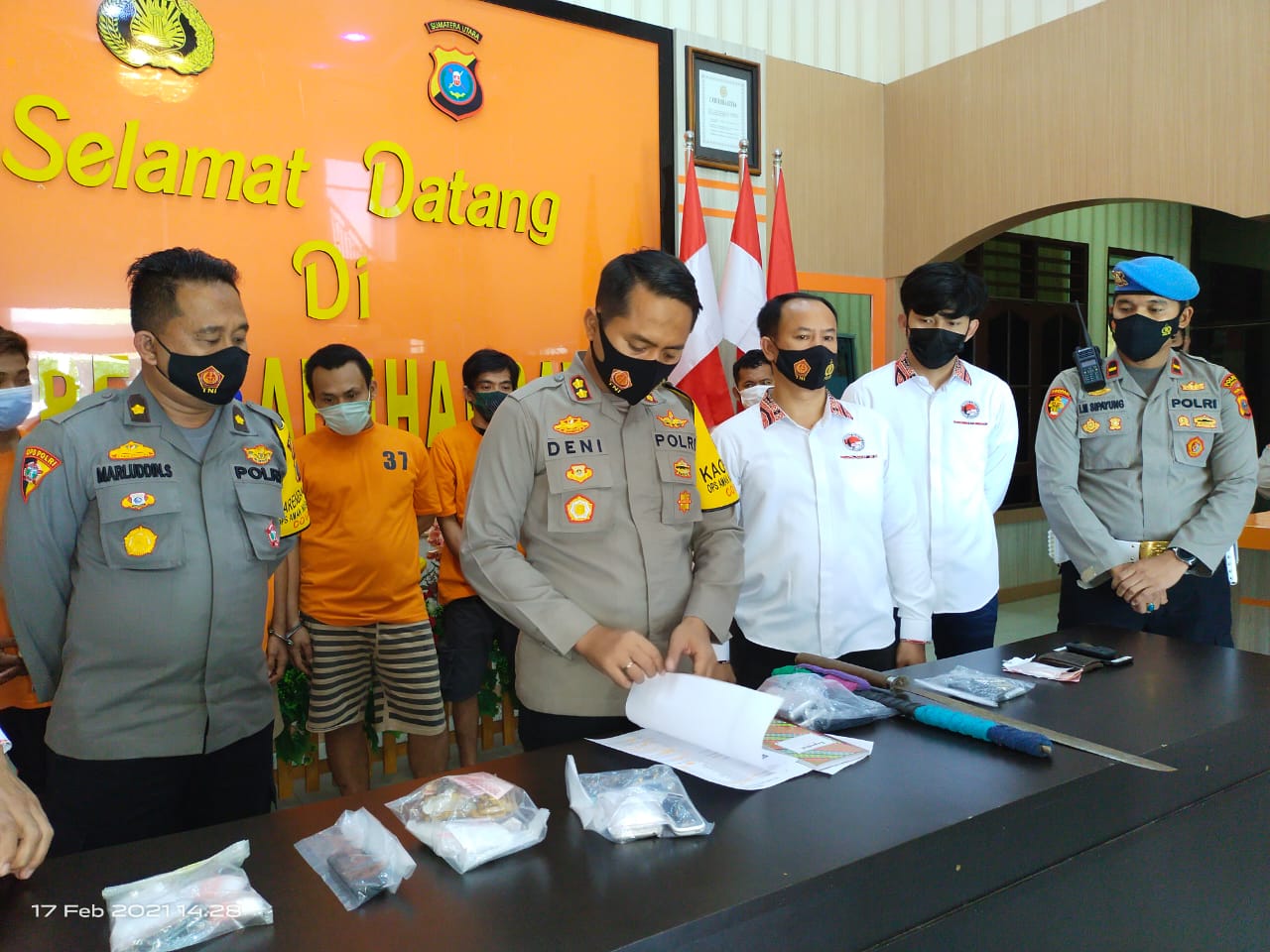 Demikian disampaikan Kapolres Labuhanbatu AKBP Deni Kurniawan,SIK.,MH didampingi Kabag Ops KOMPOL Marluddin,S.Ag,Kasat Narkoba AKP Martualesi Sitepu,SH.,MH,Kasubag Humas AKP Murniati,SH.,KBO Narkoba IPTU Chairul Azhar,Kanit I IPDA Sarwedi,Kanit II IPDA Tito Alhafezt dan Kasi Propam IPDA Iskandar Sipayung Rabu (17/2/2021) di lobi Polres Labuhanbatu.