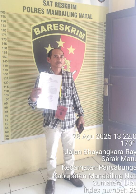 “Alhamdulillah, kita tadi secara resmi telah melaporkan seseorang berinisial RS. Laporan kita diterima dengan berdasarkan Surat Tanda Penerimaan Laporan (STPL) dengan nomor : STPL/B/322/VIII/2025/SPKT/POLRES MANDAILING NATAL/POLDA SUMATERA UTARA,” ucap Afnan.
