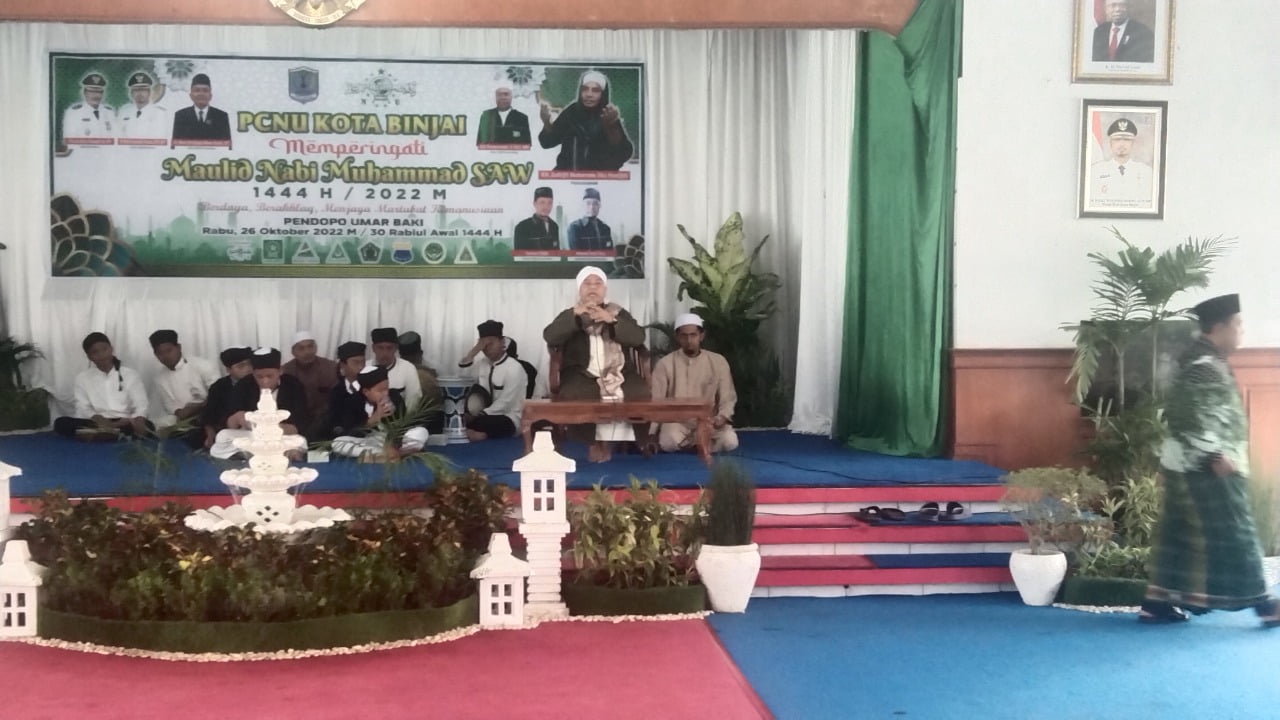BINJAI | Pengurus Cabang Nahdatul Ulama (NU) Kota Binjai memperingati Maulid Nabi Muhammad SAW di Pendopo Umar Baki Binjai, Rabu (26/10/22).